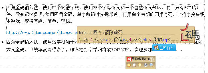 上面就是四角金码输入法文字录入界面,一次试用,终生受益,赶快试试吧!